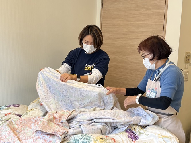 この日は、次の利用予定の方の受け入れ準備として、清掃や物品補充などにご協力いただきました。気持ちを 込めて丁寧にご協力くださったお陰で、衛生的に安全で、安心して利用いただけるお部屋に整えることができました。