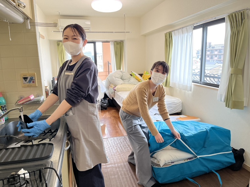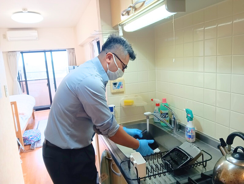 この日は、各部屋の水回りや室内の清掃に加えて、やかんを磨いたりシーリングライトのカバーを外して掃除したり、細かい所まで手を入れることができました。